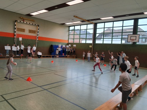 Einen ganzen Vormittag lang wurden spannende Bewegungsangebote, abwechslungsreiche Einzel- und Klassenwettkämpfe absolviert. Durch die 50-prozentige Übernahme der Kosten vom Förderverein war das tolle Event für alle Schülerinnen und Schüler kostenlos und in den Sportpausen gab es für alle Kinder einen vom Förderverein organisiertem gesundem Snack. Hierfür sagen wir herzlichen Dank!