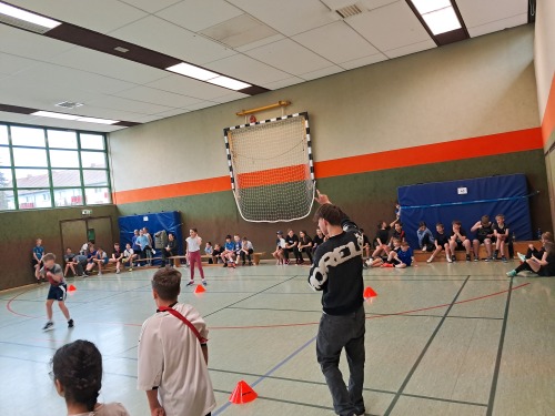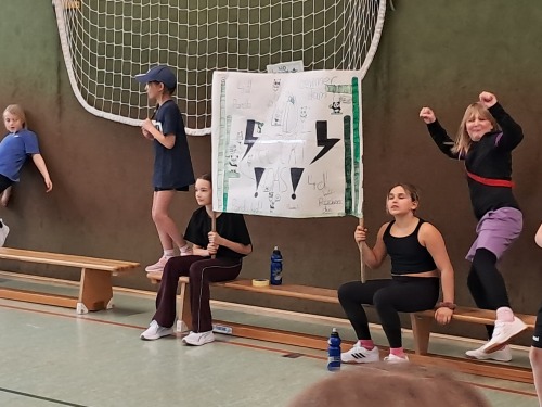 Alle Klassenteams haben gekämpft sowie fair gespielt, das Turnier blieb bis zum Ende spannend. Verdient gewonnen – mit nur einem verlorenen Spiel – hat die Klasse 4d. Gemeinsame Zweite wurden die 4a und die 4b, der dritte Platz ging an die 4c. Eine super Unterstützung waren unsere beiden Praktikanten Kasimir und Justus, die sich als Schiris zur Verfügung gestellt hatten. Insgesamt war es ein toller sportlicher Tag.