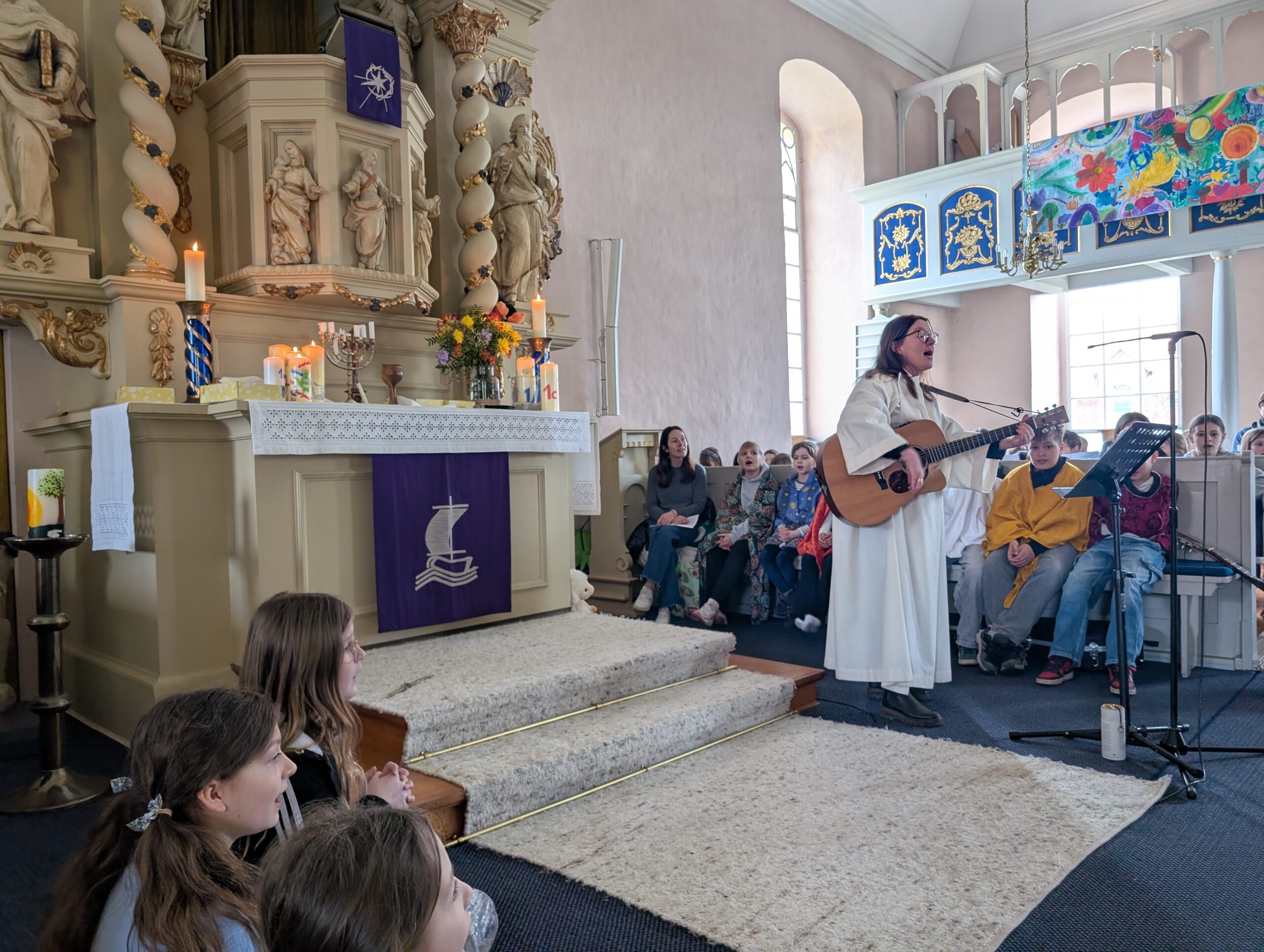 Kurz vor den Osterferien fanden in der Kreuzkirche zwei Ostergottesdienste mit allen Kindern statt. (Jahrgang 1 und 2 am 21.03.23 und Jahrgang 3 und 4 am 22.03.23.)